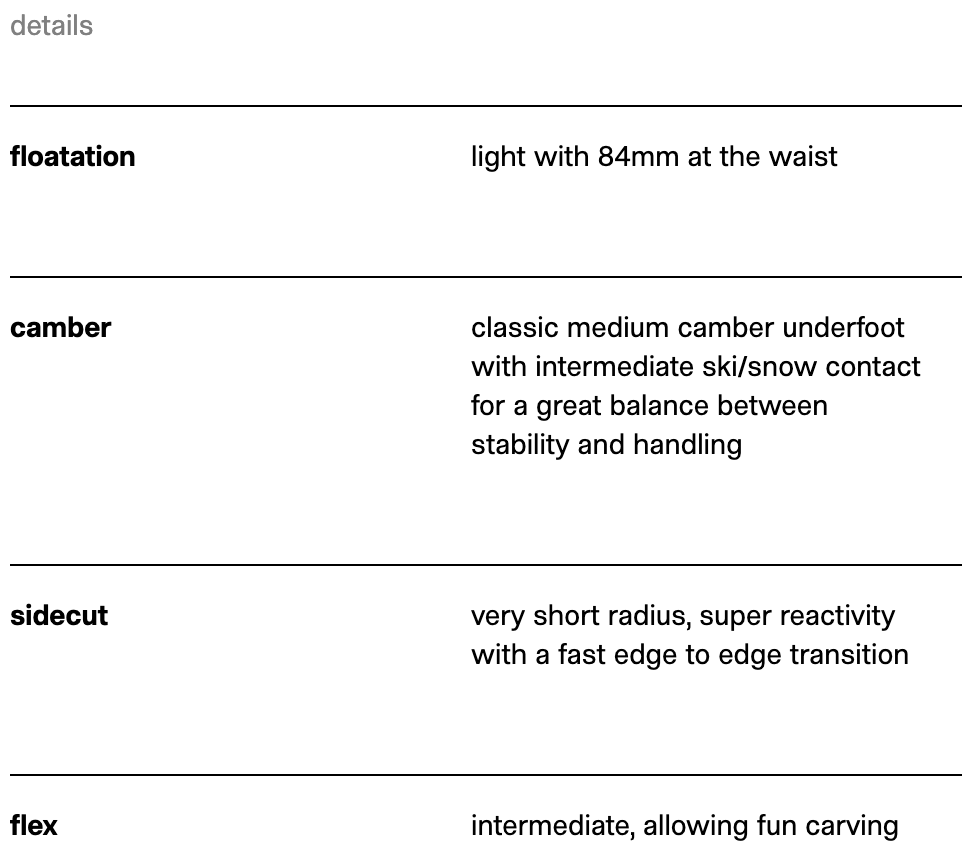 Octo Birdie! Here's a brand new all-terrain ski, a young cousin inspired by the Mirus, UFO ski and considerable success at blackcrows over the last two years. With the Octo Birdie, we want to take our exploration of on-piste and piste-side skiing a step further, by disrupting the way it's done, to enhance the skier's enjoyment of the sport. The aim is to mix angular curves with newschool-inspired ease. The Octo Birdie is also a UFO for carving, and will appeal to fanatics and novices alike. The swallowtail is there again, for style. Smile on to the next turn.