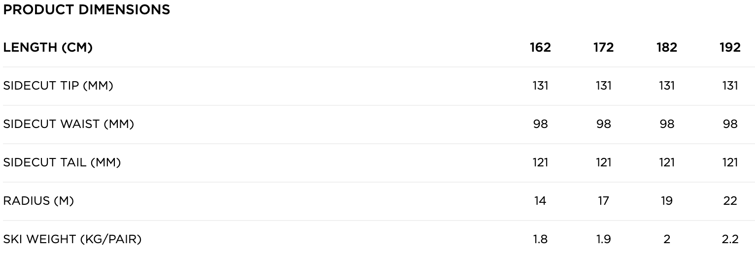 RECTANGULAR SIDEWALL construction feature a horizontal layering of core materials (wood, fiberglass, metal, etc.) combined with full-length vertical sidewalls to deliver optimized edge grip, precision, balance, and power.