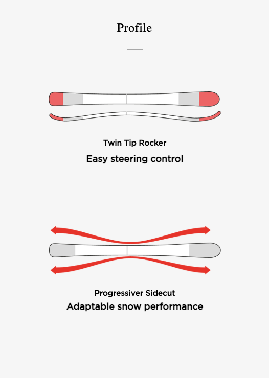 Designed for the deepest powder days, our most progressive rocker/camber profile delivers an award-winning balance of confident versatility and effortless float. It allows easy steering and instant speed control.
