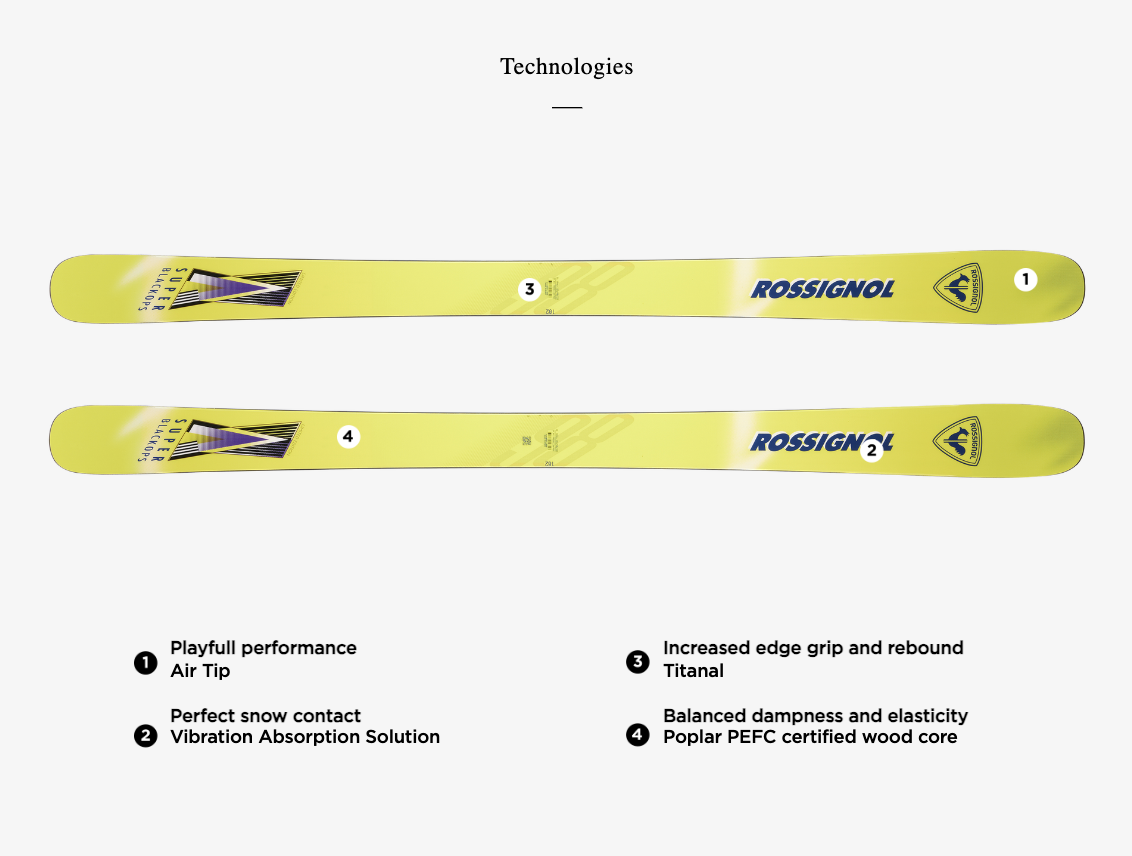Click into the limited edition Rossignol Super Blackops skis for progressive performance that inspires charging, ripping and laying down tracks anywhere on the mountain. They blend the dynamic feel of a wood core with the energy-boosting power of titanal layers for confident control at any speed. They combine a versatile 98mm waist and the grip of full sidewall construction with a twin rocker profile to create a playful yet precise ride that lets you turn at will and surf as needed.